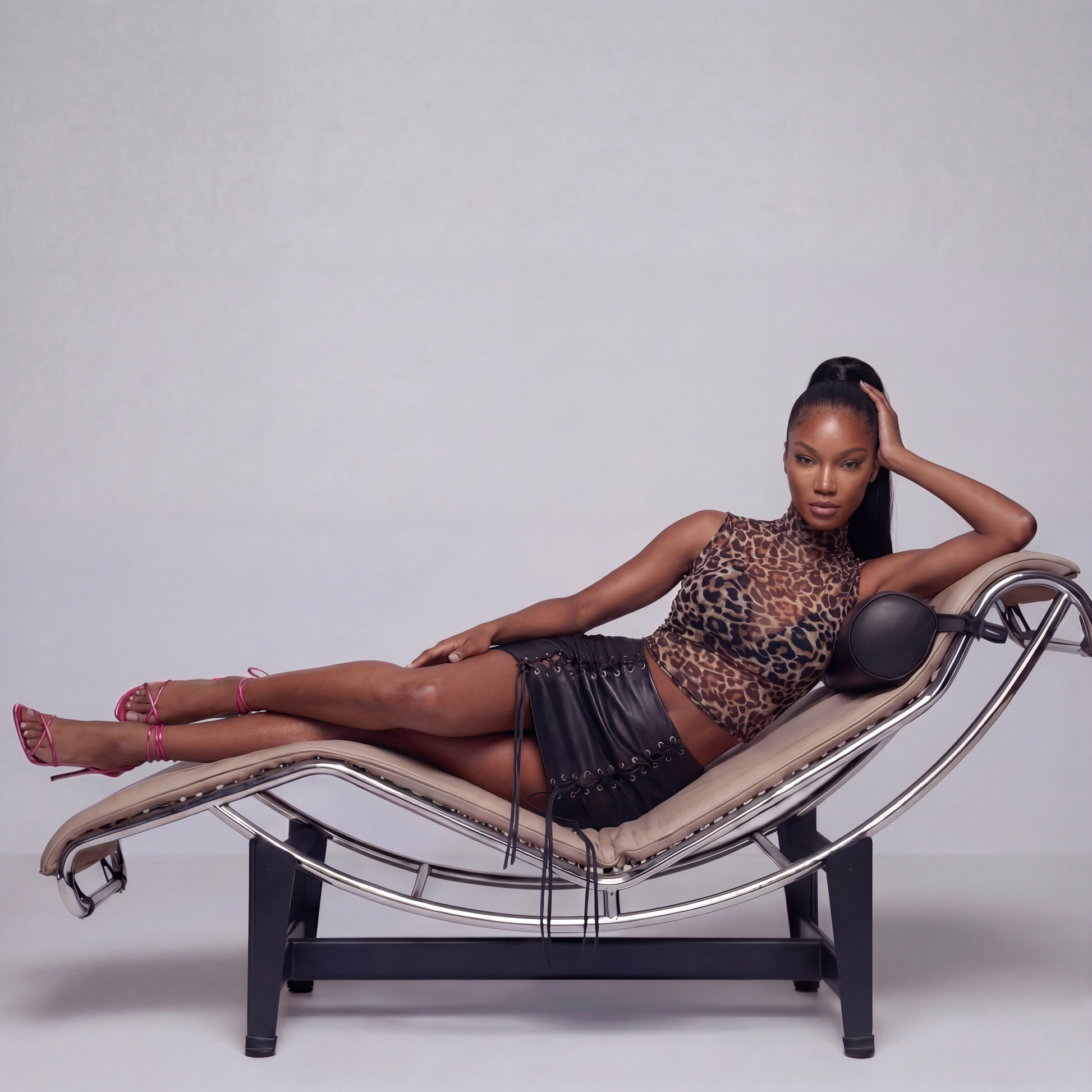 Sheer, sculpted draped-neck silhouette that brings high-impact attitude with zero effort. Crafted from ultra-light stretch mesh, this top contours the body while letting the print steal the spotlight: a rich, dimensional leopard pattern that feels both fierce and undeniably refined.