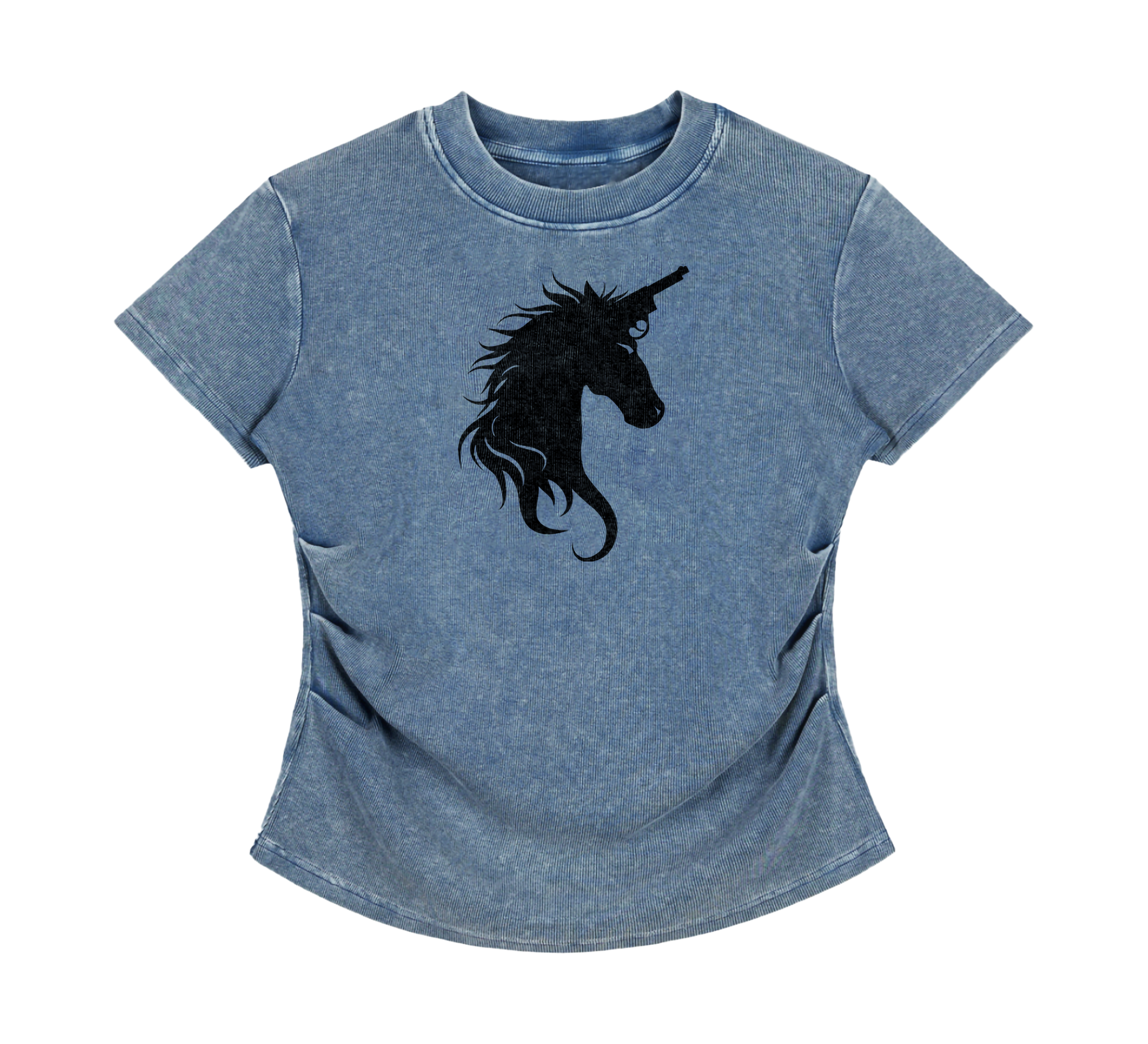 • Vintage washed, ruched-bodycon tee for the dolls • 96% cotton, 4% spandex